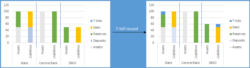 Further, this would all happen on the liability side of bank balance sheets. But, as those of you who have read my primer may recall, central bank reserves are a bank asset. In fact, the impact of households owning government bills on bank reserves would be zero, for two reasons.